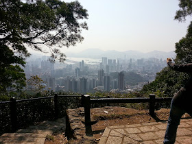 City view at a wee pavilion en route, looking south towards the bulk of urban/ residential Kowloon.